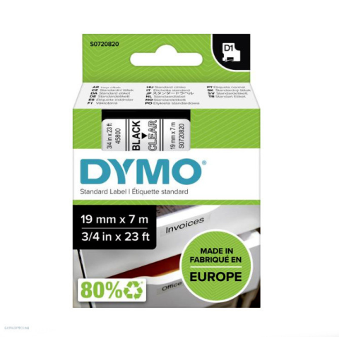 1 kép DYMO Betűnyomó kazetta gépi 19mmx7m Dymo fekete-átlátszó 45800