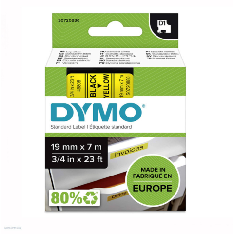 1 kép DYMO Betűnyomó kazetta gépi 19mmx7m Dymo fekete-sárga 45808