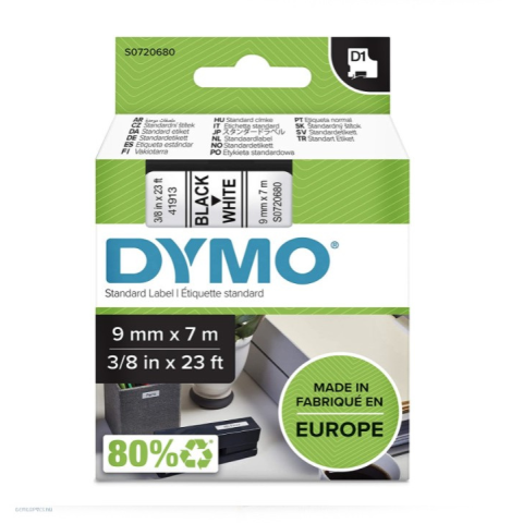 1 kép DYMO Betűnyomó kazetta gépi 9mmx7m Dymo fekete-fehér 40913