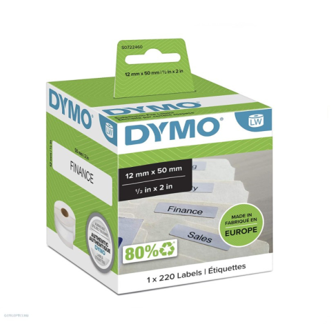 Tökéletes megoldás minden fájlcímkézési igényhez, a DYMO LW Függőmappa címkék megkönnyítik az irodai szervezést. Dokumentumait ezentúl biztosan megtalálja a DYMO tartós, megbízható címkéivel. LabelWriterrel közvetlen hőnyomtatással nyomtatható, így nincs