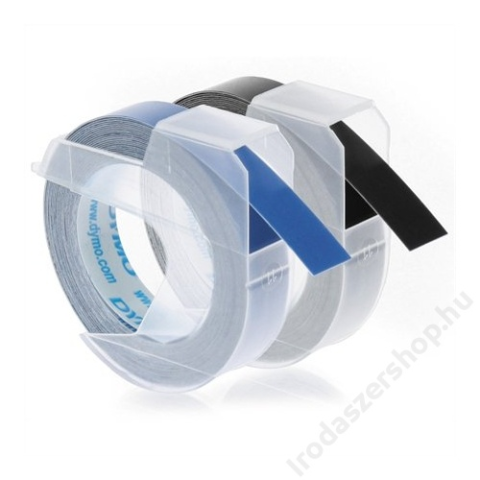 Feliratozógép szalag, 9 mm x 3 m, DYMO 3D, kék (GD524706) A DYMO dombornyomott címkéi 3D hatást eredményeznek, az idő múlásával sem fakulnak ki. -speciális kazetták Omega és Junior gépekhez -színes, műanyag szalag, melyen a betűk a mechanikus nyomás