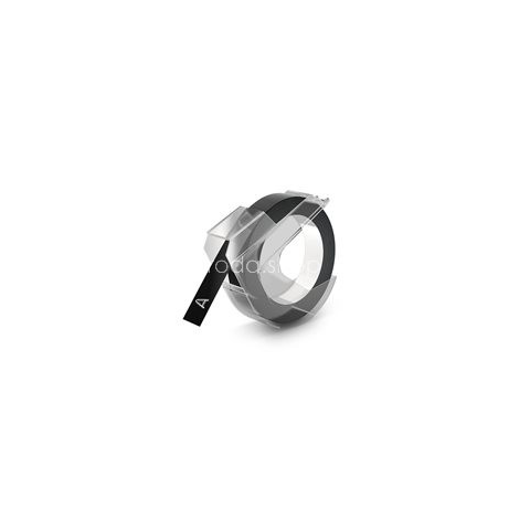 Feliratozógép szalag, 9 mm x 3 m, DYMO 3D, fekete A DYMO dombornyomott címkéi 3D hatást eredményeznek, az idő múlásával sem fakulnak ki. -speciális kazetták Omega és Junior gépekhez -színes, műanyag szalag, melyen a betűk a mechanikus nyomásra kifeh