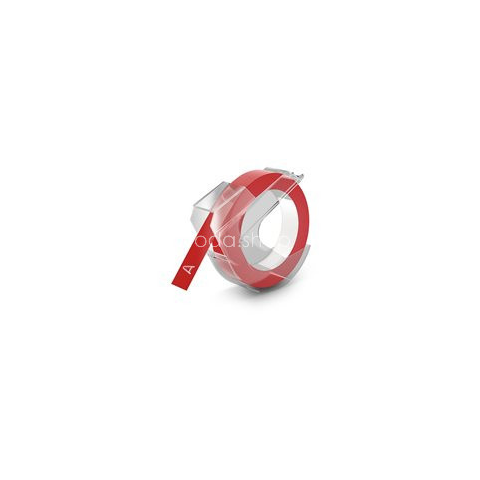 Feliratozógép szalag, 9 mm x 3 m, DYMO 3D, piros A DYMO dombornyomott címkéi 3D hatást eredményeznek, az idő múlásával sem fakulnak ki. -speciális kazetták Omega és Junior gépekhez -színes, műanyag szalag, melyen a betűk a mechanikus nyomásra kifehé
