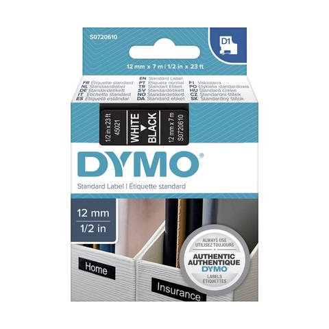 1 kép DYMO feliratozószalag D1, 12mm, fekete szalag,fehér betű S0720610 (S0720610)
