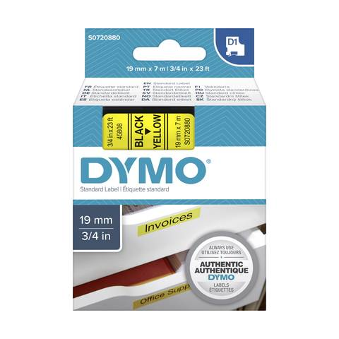 DYMO feliratozószalag D1, 19mm, sárga/fekete, S0720880 (S072880) etikett 1 kép