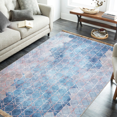 A Horeca-New modern szőnyeg tökéletes választás otthonába! 60 x 100cm méretével és kék színével elegáns és stílusos megjelenést biztosít. Poliészter, 5mm vastagságával kényelmes tapintású és tartós. Karbantartása egyszerű: rendszeres porszívózással és sz