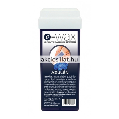 E-Wax Gyantapatron Azulén széles görgőfejjel 100ml E-Wax Gyantapatron Azulén hámképző, nyugtató és gyulladásgátló hatása van. Felmelegítéséhez gyantamelegítő gép és papírlehúzócsík szükséges.