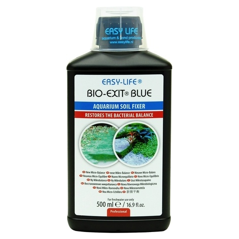 A talajbaktériumok mikrobiológiai egyensúlyhiánya biztosíthatja a kék alga vagy cianobaktériumok növekedésének lehetőségét. Az Easy-Life Bio-Exit Blue erősen serkenti a heterotróf talajbaktériumok növekedését. Ily módon a talaj mikrobiológiai egyensúlya teljes mértékben helyreállítható. Helyes használat esetén nem káros a halakra, növényekre, garnélarákra és más gerinctelenekre.