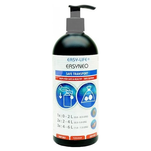 A halak szállítása és a fogság stressz hatásának teszi ki a halakat. Ez legyengíti a nyálkahártyájukat, mely az első védelmi vonaluk a betegségekkel szemben. Az Easy-Life EasyNeo természetes úton erősíti az immunrendszert. Hatásosan megelőzi a betegségeket, melyet a szállítás okozta stressz idézett elő. Antibiotikumok, vegyszerek és nehézfémek nélkül, megfelelő minden édesvízi és sósvízi halhoz, ártalmatlan a rákokra, csigákra, teknősökre és kora