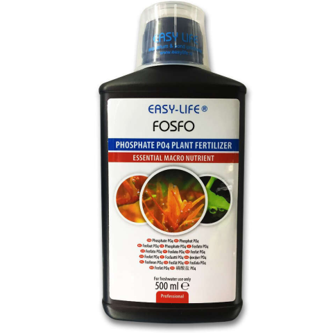 Easy-Life Fosfo akváriumi növénytáp. Egy növényes akváriumban, amiben nincs, vagy csak kevés díszhal van, általában nem elegendő a nitrát (NO3) és foszfát (PO4) szintje az akváriumi növények számára. A Fosfo növénytáppal szintre állítható az akváriumvíz foszfát-szintje. Nitrátot nem tartalmaz.