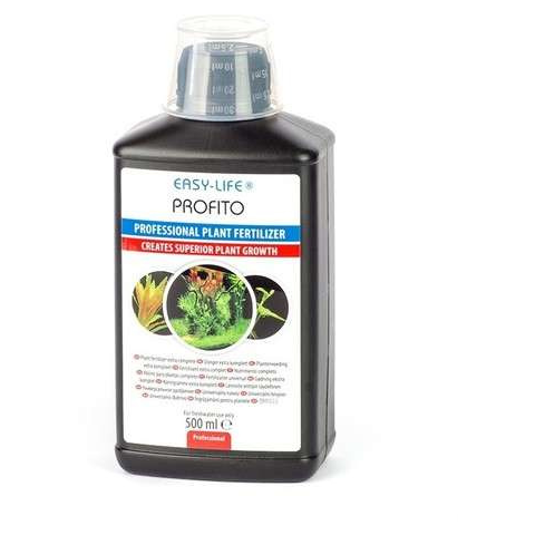 Easy-Life ProFito akváriumi növénytáp mérőkupakkal. Kiváló minőségű komplett folyékony növénytáp, mely tartalmazza a vízinövények számára szükséges nyomelemeket, így növényeink szépen fejlődnek. Különösen jó hatást érhetünk el az Easy-Life Carbo termékkel együtt használva.