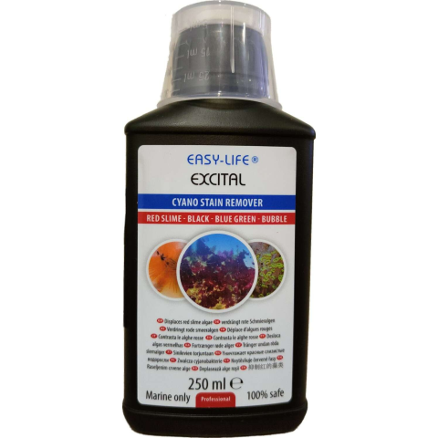 Easy Life Excital a vörös alga ellen kifejlesztett termék tengeri akváriumi használatra. Speciális mikroorganizmusok képződésének elősegítésével kiszorítja a vörös algát az akvárium fényérzékeny részein. A vörös alga többé nem tud kialakulni, valamint nincs káros hatása az akvárium élőlényeire és a biológiai szűrőre sem.
