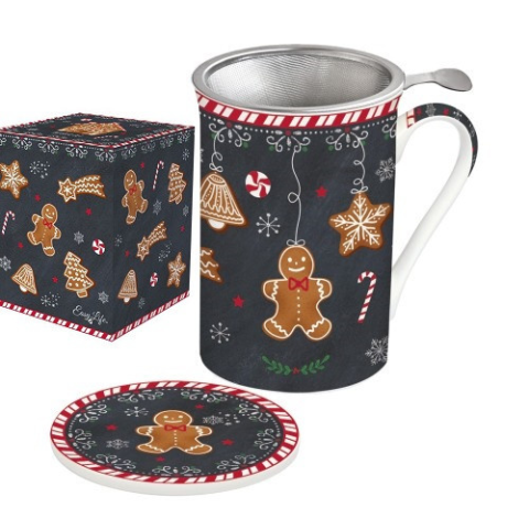 1 kép Easy Life Nuova R2S Porcelánbögre 300ml, tetővel, fémszűrővel, dobozban, Gingerbread