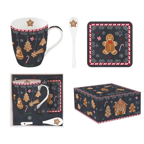 1 kép Easy Life Nuova R2S Porcelánbögre 350ml porcelánkanállal, parafa poháralátéttel, dobozban, Gingerbread