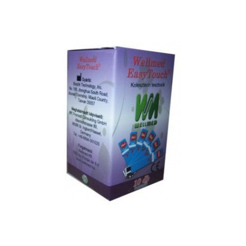 Wellmed Easy Touch Koleszterin tesztcsík Koleszterinszint mérő tesztcsík Wellmed Easy Touch GC és GCU készülékekhez 10 db-os kiszerelés, Wellmed Easy touch készülékhez használható koleszterin tesztcsík. Easy touch készülékhez koleszterin tesztcsík tula