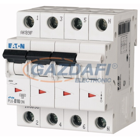 1 kép EATON 165031 Kismegszakító, 6kA PL6-D10/3N - 10 A, 3P+N, karakterisztika: D