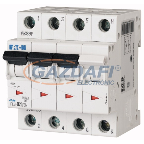 1 kép EATON 165038 Kismegszakító, 6kA PL6-D20/3N - 20 A, 3P+N, karakterisztika: D