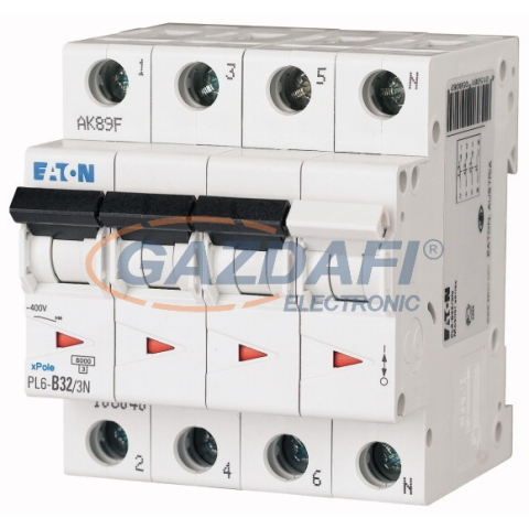 1 kép EATON 165042 Kismegszakító, 6kA PL6-D32/3N - 32 A, 3P+N, karakterisztika: D