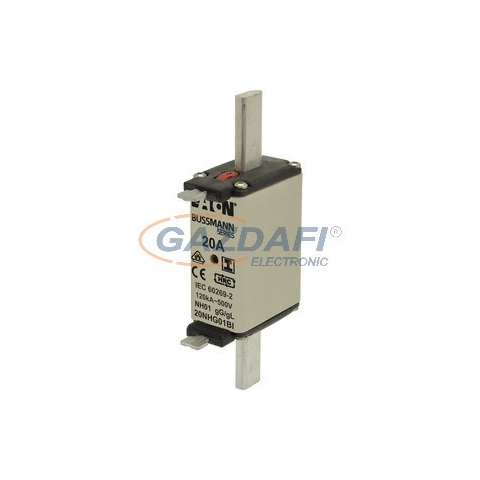 1 kép EATON 20NHG01BI NH-betét 20A, DIN 01 méret, 500V AC, gG, szig.fül