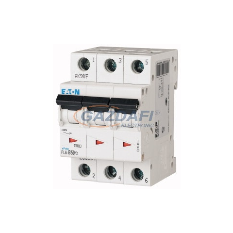 1 kép EATON 286606 Kismegszakító, 6kA 3 pólus 50A, C karakterisztika, PL6-C50/3