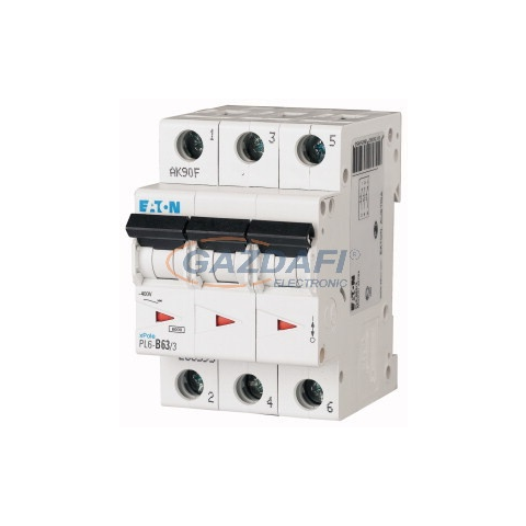 1 kép EATON 286607 Kismegszakító, 6kA 3 pólus 63A, C karakterisztika, PL6-C63/3