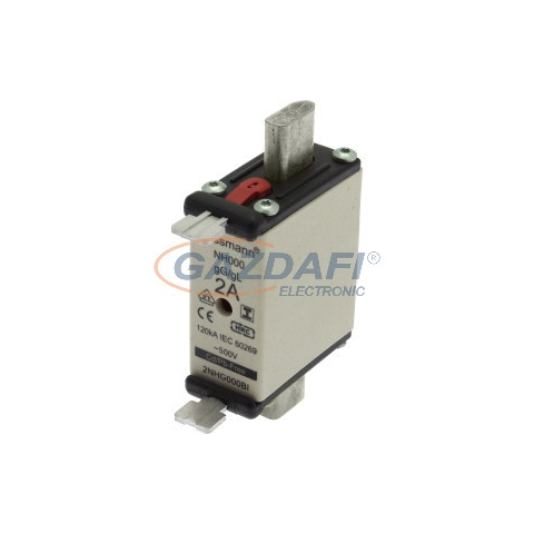 1 kép EATON 2NHG000BI NH-betét 2A, DIN 000 méret, 500V AC, gG, szig.fül