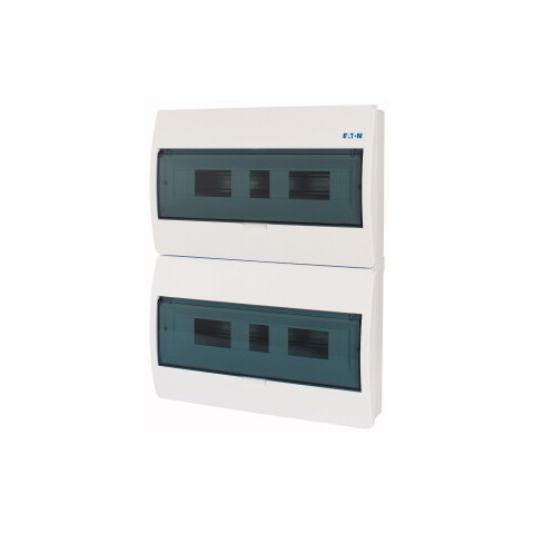 Kiselosztó falonkívüli 2soros, 36 modulos átlátszó ajtóval IP40 PE/N sínnel Eaton BC-O 280350