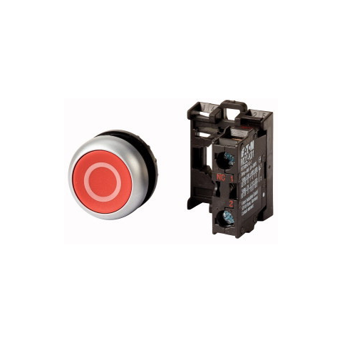 Nyomógomb komplett műa. d22 piros lapos visszaugró 1ny csavaros kerek M22-D-R-X0/K01 EATON