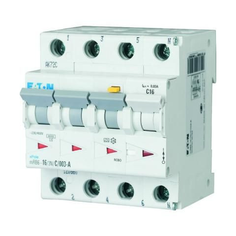 Áramvédő(FI)-kismegszakító 3P+N 16A C-jelleg 0.03A A-típus 6kA/61009-1 mRB6-16/3N/C/003-A EATON