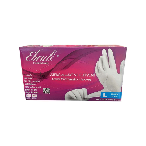 1 kép Ebruli Fehér latex kesztyű L (100 db)
