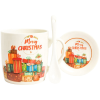 1 kép eCa KB17WZ4 karácsonyi kerámia bögre kanállal és csészealjjal, 400 ml