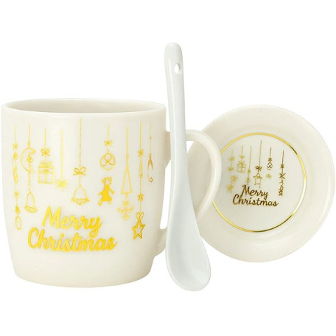 eCa KB33WZ4 karácsonyi kerámia bögre kanállal és csészealjjal, 350 ml bögrék, csészék termékleírás
