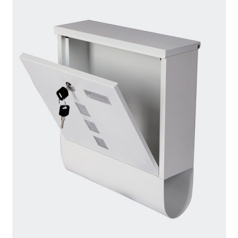 1 kép ECD Rozsdamentes acél postaláda fehér színben, négyzetablakos modern megjelenés, újságtartós