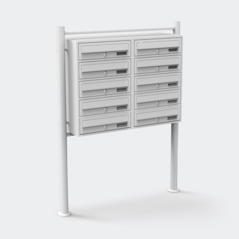 1 kép ECD Társasházi postaláda 10 darabos galvanizált fehér kültéri állványos csoportos levélszekrény