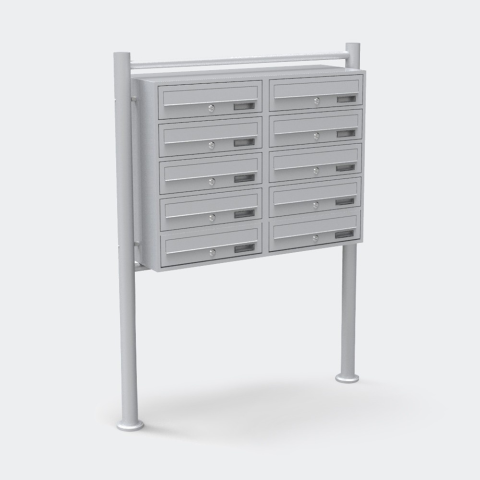 1 kép ECD Társasházi postaláda 10 darabos galvanizált szürke kültéri állványos csoportos levélszekrény