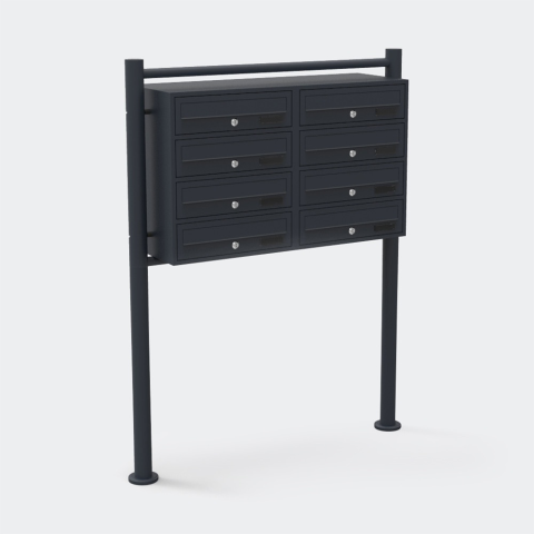 ECD Társasházi postaláda 8 darabos kültéri állványos csoportos nyolcas galvanizált fekete levélszekrény