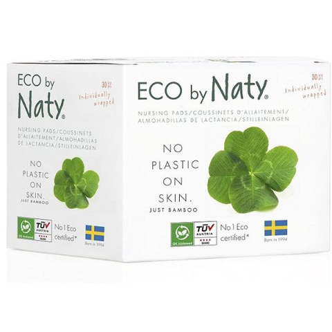 Melltartóbetét - textil, egyszer használatos, láthatatlan a ruházat alatt és légáteresztő, 30 darab a csomagban Az eldobható Eco by Naty melltartó betétek tökéletesen alkalmazhatók minden olyan újdonsült anya számára, aki nem válik közömbössé a környezettel szemben. A Naty Eco betétek lágyak, vékonyak, diszkrét