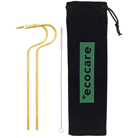 1 kép Ecocare Környezetbarát fém szívószál arany 2 db