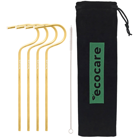 1 kép Ecocare Környezetbarát fém szívószál arany 4 db