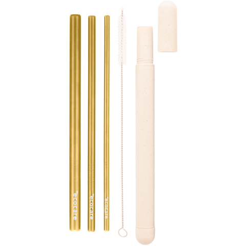 1 kép Ecocare Környezetbarát fém szívószál készlet arany 3 db