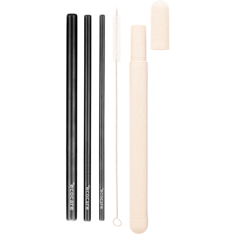1 kép Ecocare Környezetbarát fém szívószál készlet fekete 3 db