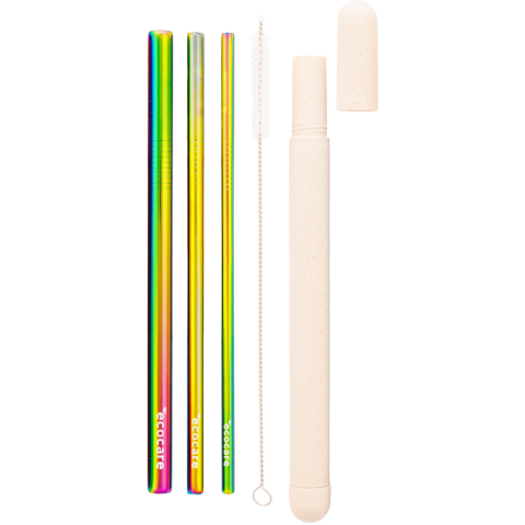 1 kép Ecocare Környezetbarát fém szívószál készlet Rainbow 3 db