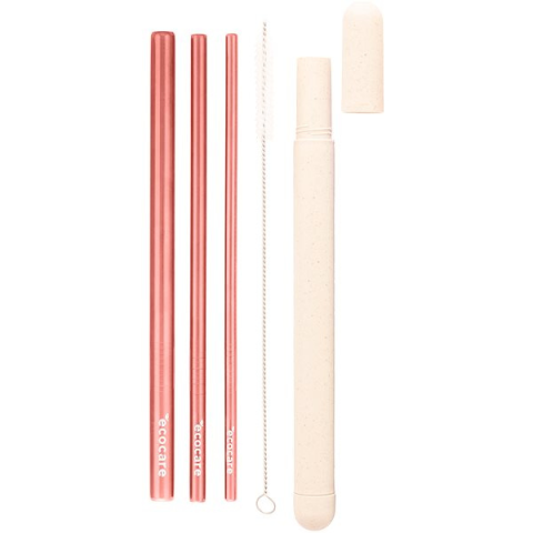 1 kép Ecocare Környezetbarát fém szívószál készlet rózsaszín 3 db