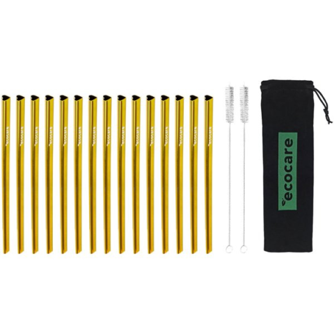 Szívószál - fém, mosható és mosogatógépben mosható, kefe és tok a csomag része, 15 szívószál a csomagban, hosszúság 215 mm, átmérő 8 mm, arany kivitel Egy ilyen népszerű Ecocare fém szívószál erős, tartós, és hosszú távú használatra készült. A szívószál használata védi a fogakat a savas és színezett italoktól. A mosogatógépben való mosás lehetősége
