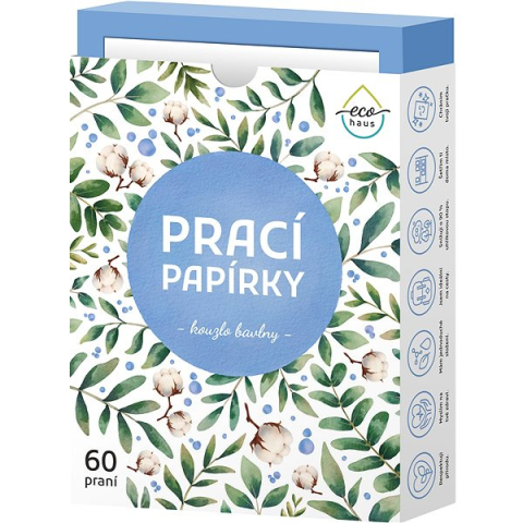 Mosólap - alkalmas színes, fehér és fekete ruhákhoz, ökológiai, megőrzi a textil lágyságát, rendszeres használatra és érzékeny bőrűeknek, virágos illat, min. mosási hőmérséklet 30 °C, 60 mosásra elegendő Az EcoHaus mosólapok az egyetlen termék, amelyre szükséged van a fehér, fekete és színes ruhák hatékony és egyszerű mosásához. A mosólapot egyszerűen behelyezed a mosógépbe, és az néhány másodperc ala
