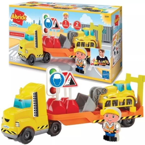Ecoiffier Abrick: Munkagépet szállító kamion játékszett - 32 cm