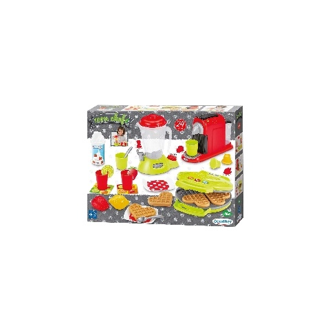 Elérkezett a kis séfek ideje! A 28 részes Écoiffer konyhai kisgép szettel a gyerekek tökéletes játék reggelit készíthetnek az egész családnak. Kávé? Gofri? Smoothy? Jöhet ilyen sorrendben. A szettben a zöld-piros, dizájnos kisgépeken kívül számos kiegészítő is található, hogy igazán izgalmas legyen a játék. A játék jó minőségű, károsanyag mentes és újrahasznosított műanyagból készült. Csomagolási méret: 51 x 38 x 10 cm Tartalom: 1 db kapszulás káv