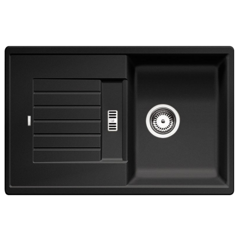 BLANCO ZIA 45 S antracit tart.nélk. Lefolyógarnitúra helytakarékos csővel, 3 1/2'“-os szűrőkosár. Modern dizájn letisztult vonalakkal. Egyenes külső vonalak, hangsúlyos, keskeny kerettel. A jellegzetes csaptelepsáv keretként megnöveli a csepegt