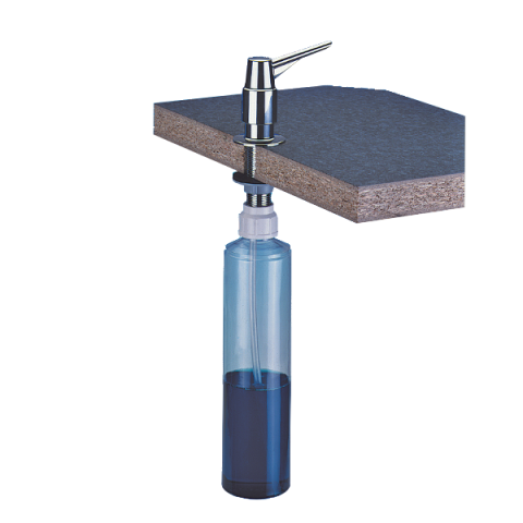 Mosogatószer adagoló, krómozott fejjel - esztétikus kivitelezés - felülről tölthető - tartály magassága 23 cm, átmérője 5 cm- beépítéshez szükséges lyuk átmérő: 22 mm