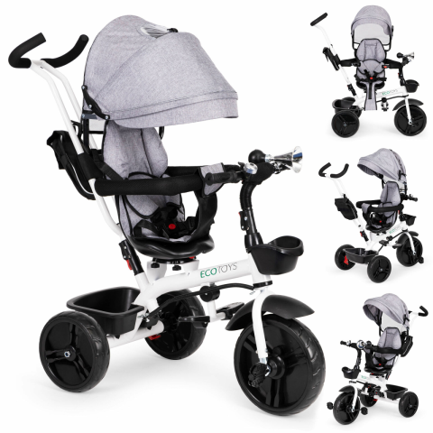 1 kép EcoToys 360°-ban forgatható tricikli baldachinos szürke ÖKOTOYS-okkal
